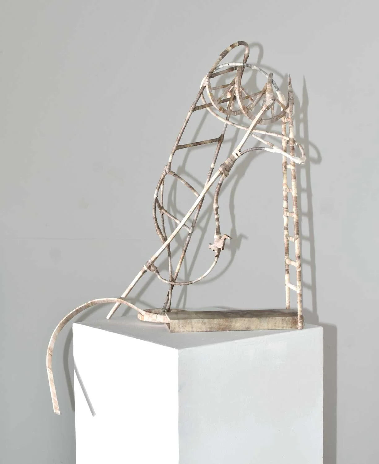 Irregular motion, 2026calf parchment, steel, wood, tubing, thermoplastic filament20 x 14 x 12 inches Inquire about this artwork Inquire about this artwork